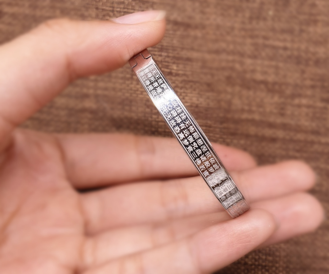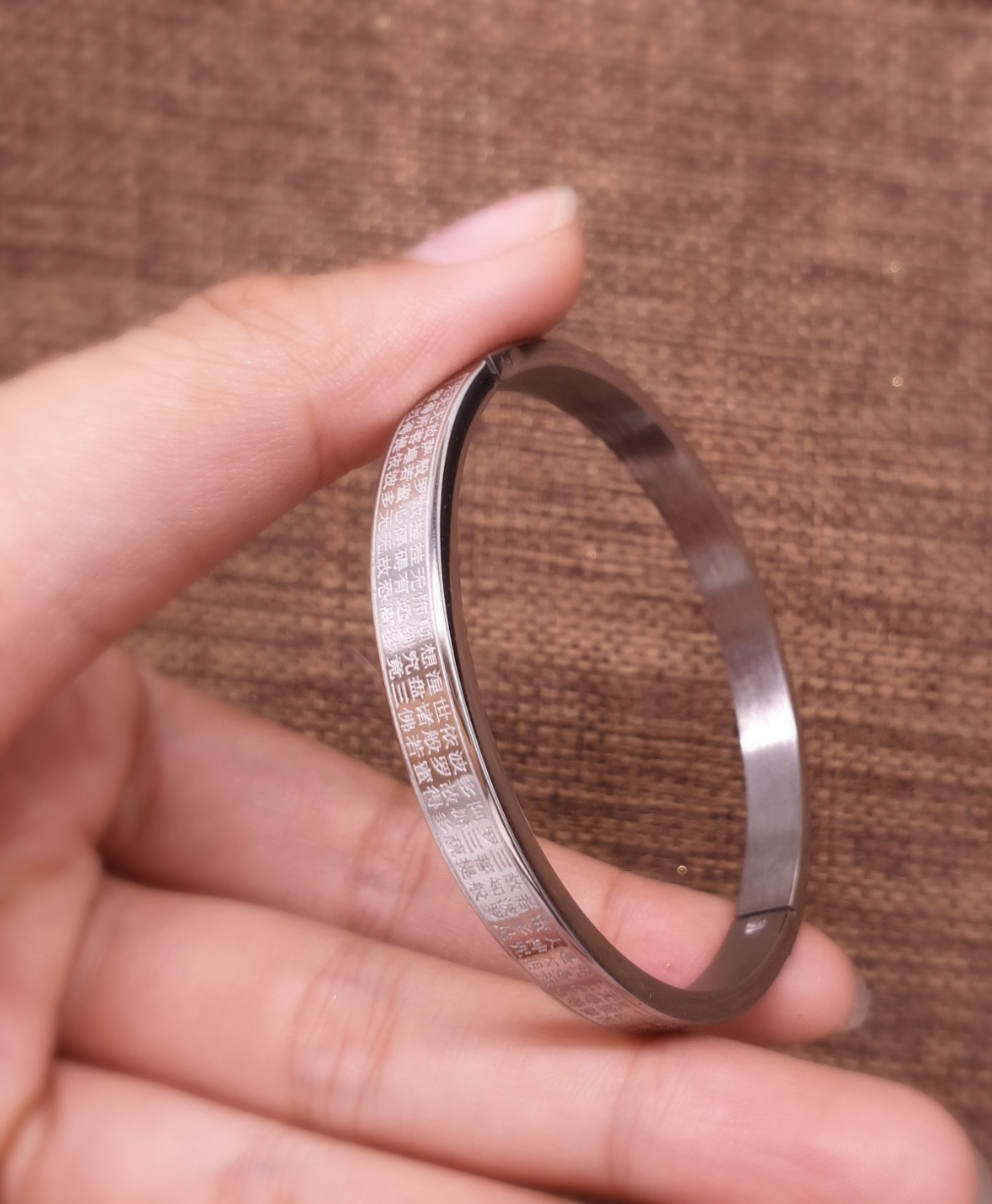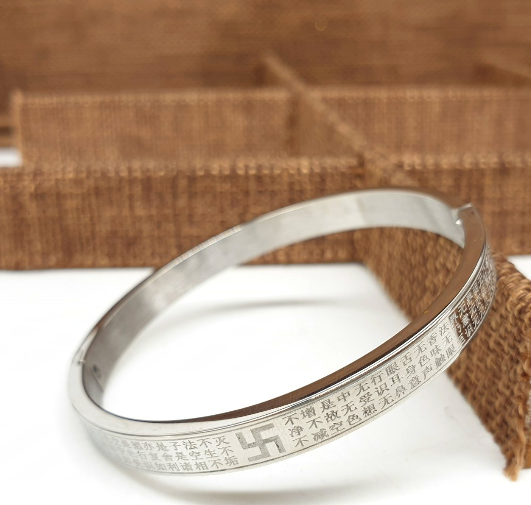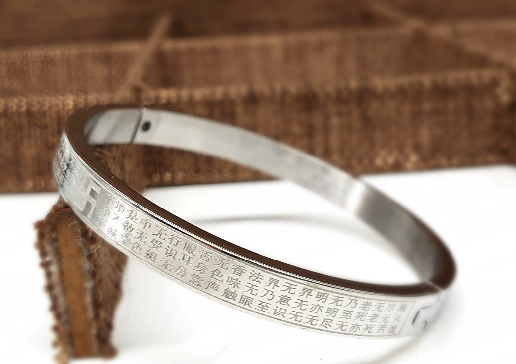 Vòng Tay Bát Nhã Tâm Kinh Bản Nhỏ_Chất liệu Titan Trắng_59mm