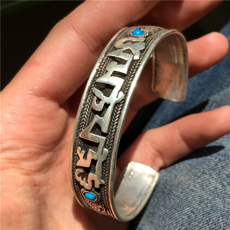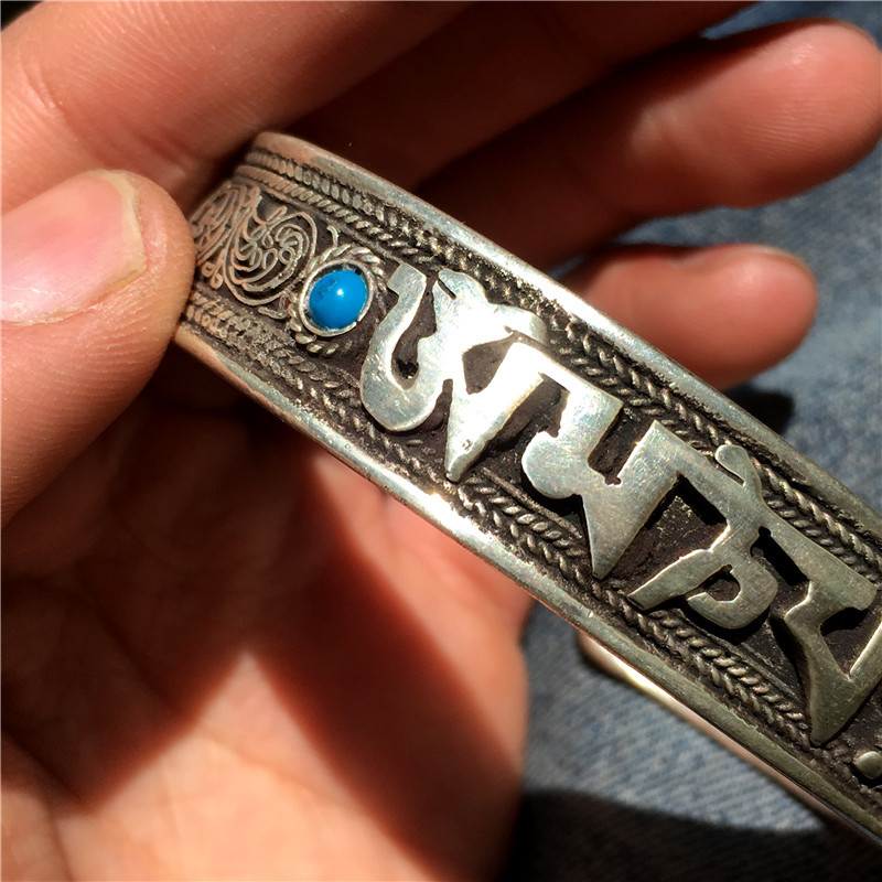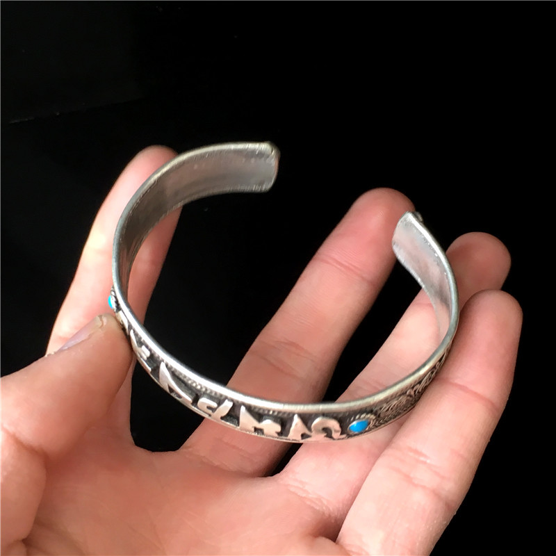 Vòng Tay Lục Tự Vong Bạc Đính Đá (Xanh,Đỏ)_Chất liệu Bạc_12mm