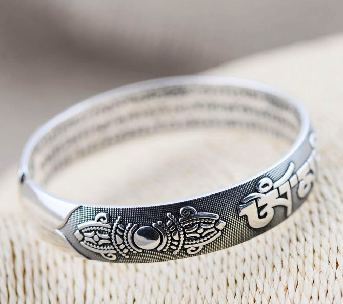 Vòng Tay Lục Tự Omani (2 Đầu Chày)_Chất liệu Bạc_14mm