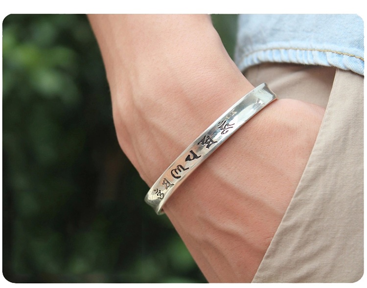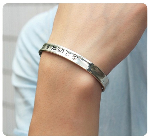 Vòng Tay Lục Tự Vòng Omani Bạc (Khắc Chữ Bên Trong)_Chất liệu Bạc_12mm