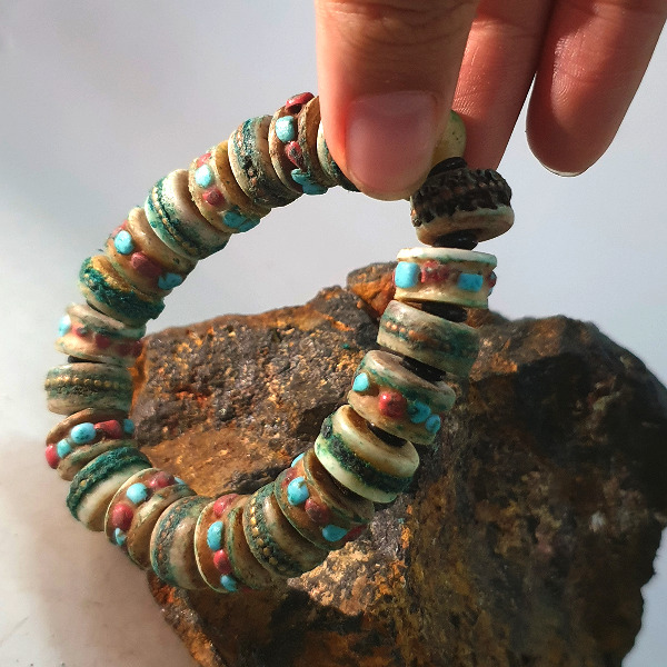 Bò Yak được người Tạng nuôi trên núi cao và chỉ ăn các loại cỏ, thuốc quý trên núi. Người dân Tây Tạng còn cho rằng Bò Yak còn ăn cả đông trùng hạ thảo. chúng gắn bó với con người như người bạn, từ việc đi lại, vận chuyển v.v… Nên khi chúng già yếu và chết đi, người Tạng muốn lưu giữ lại sự gắn bó của chúng nên tiện xương chúng làm thành tràng hạt dùng để hành trì.Một phần là để nhắc nhớ tính Vô Thường của Nhân gian.